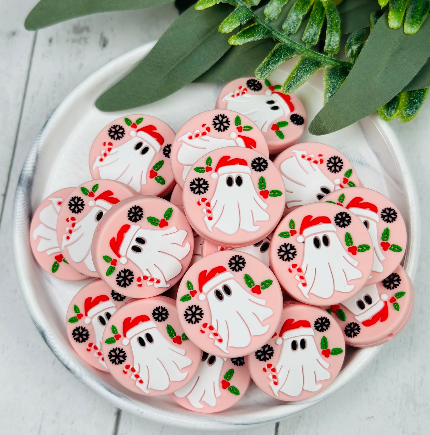 15mm Print Christmas Bows EXCLUSIVE Silicone Beads, Christmas Silicone Print Bead