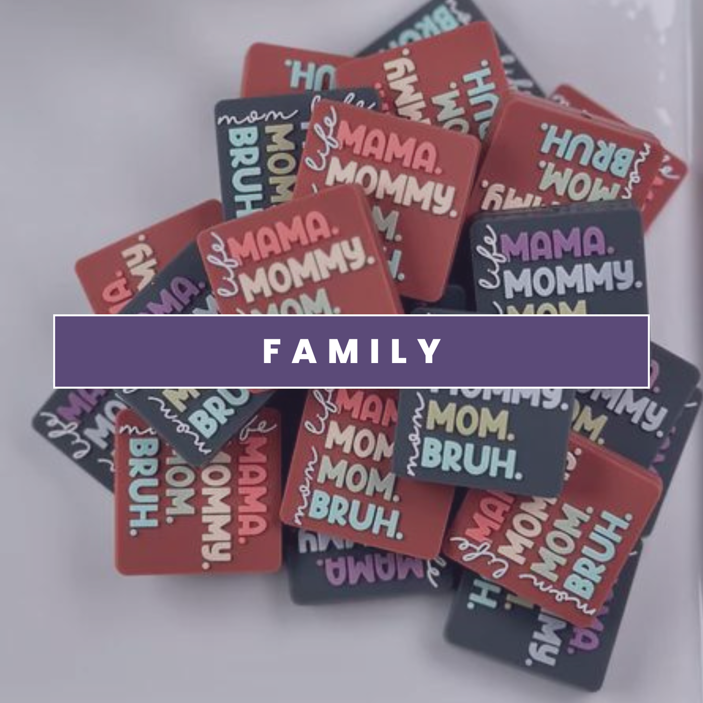 F- Floral Name Circles EXCLUSIVE Silicone Focal Bead, Mom Silicone Focal Bead
