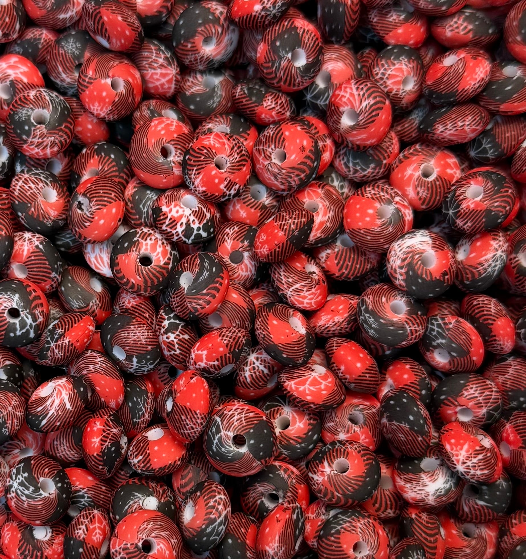 12mm Lentil Print Frosted Flannel Silicone Bead
