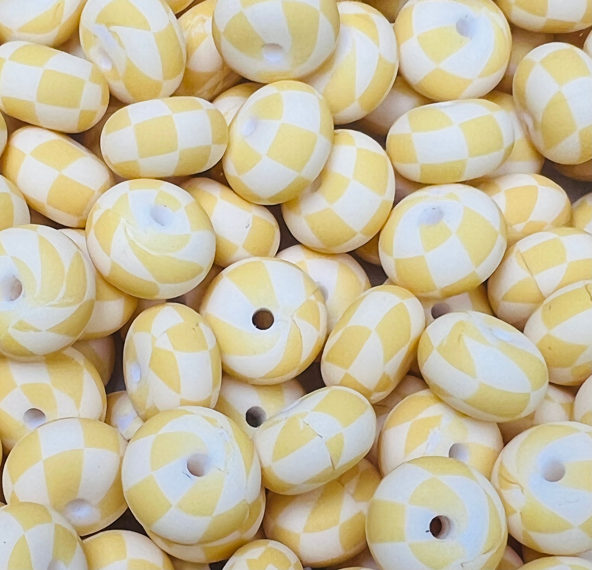 14mm ABACUS Print Yellow Checker EXCLUSIVE Printed Silicone Beads