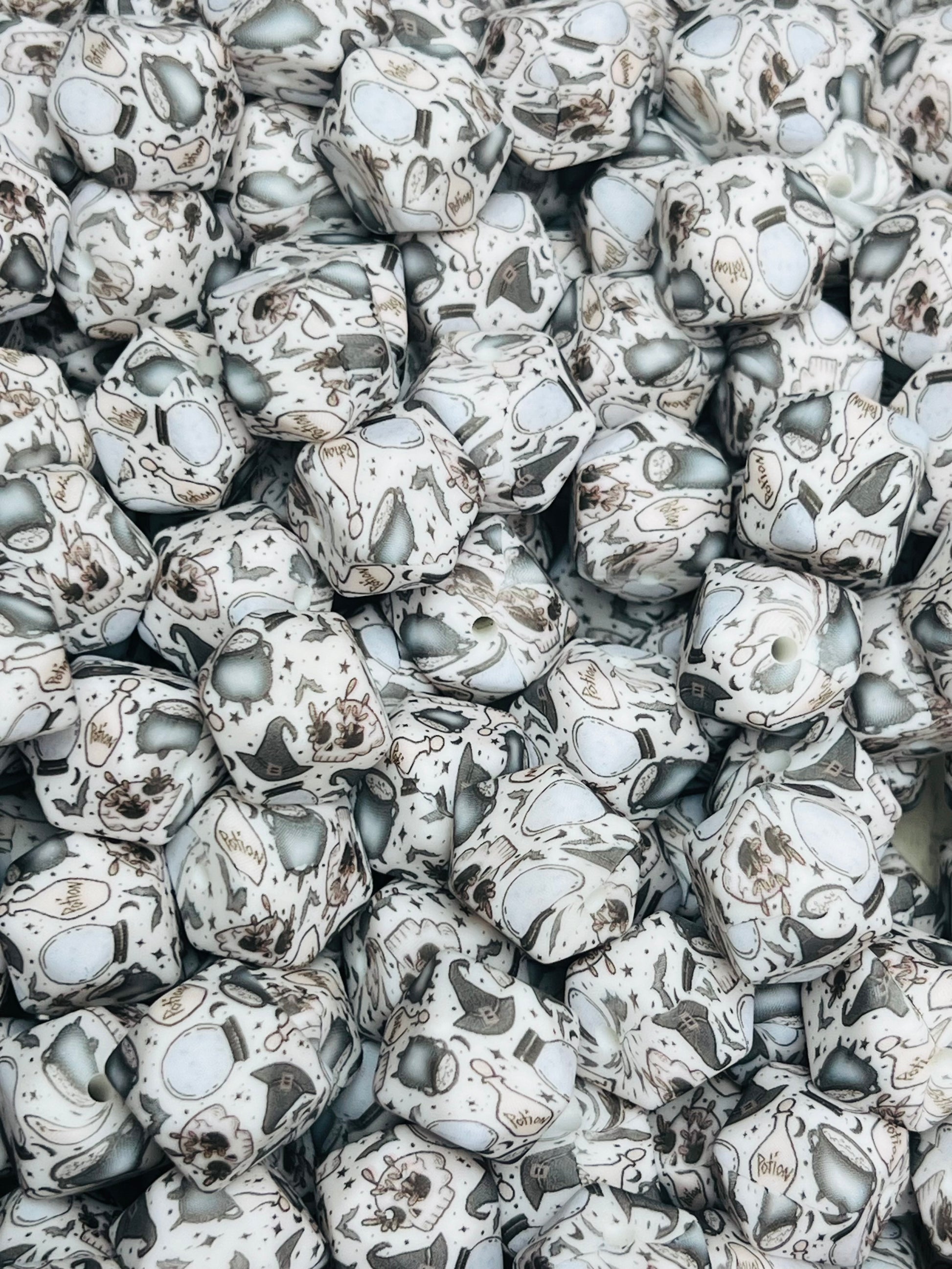 14mm Hexagon Print Witches Brew EXCLUSIVE Printed Silicone Beads