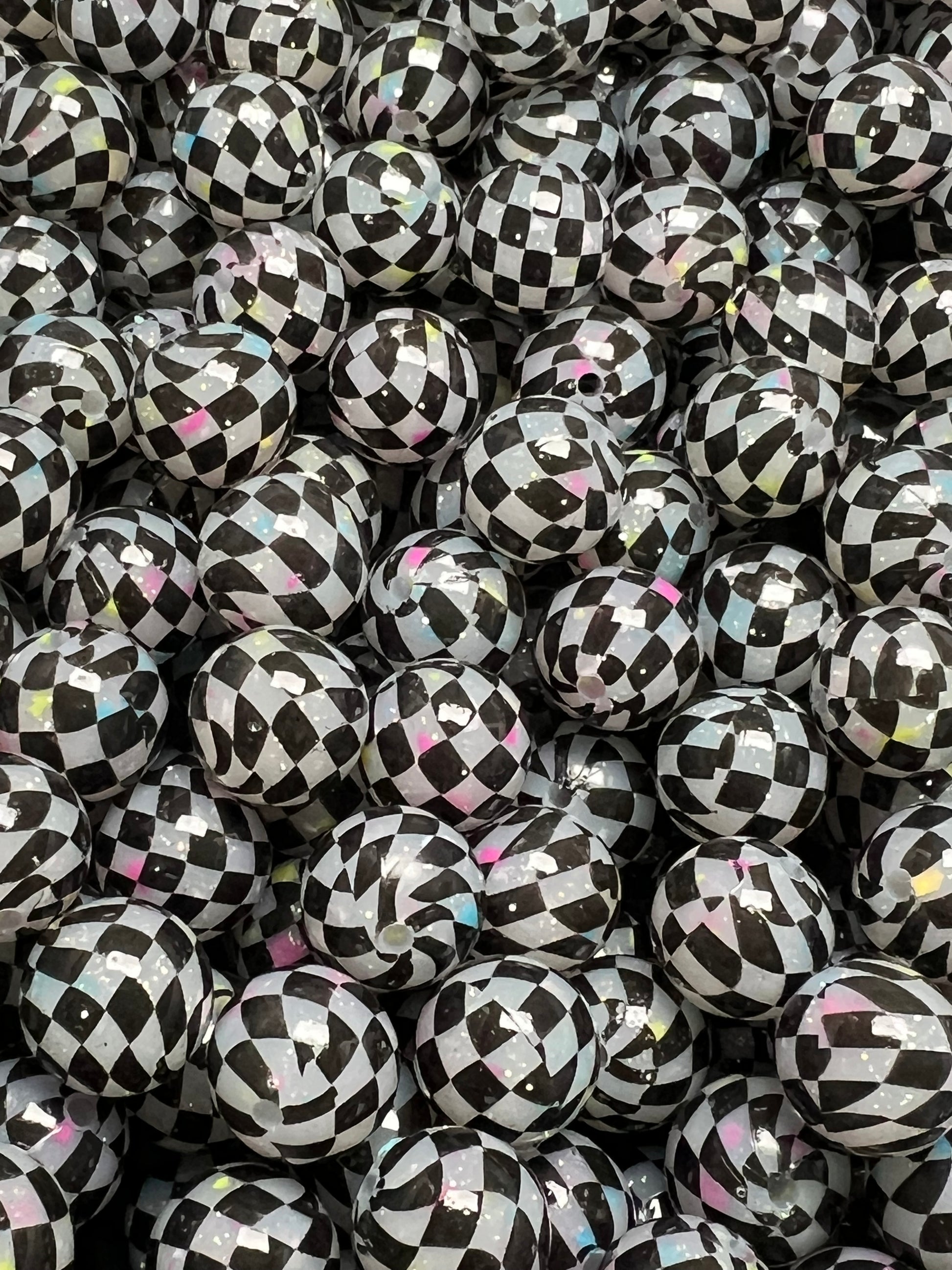 15mm Liquid Checker Sprinkles Round Silicone Beads