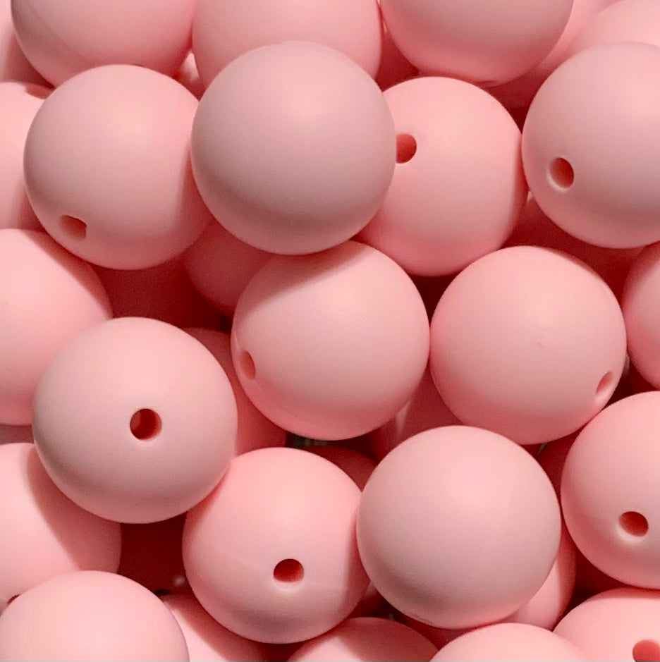 15mm round pink lemonade silicone beads with a hole size of 2mm.