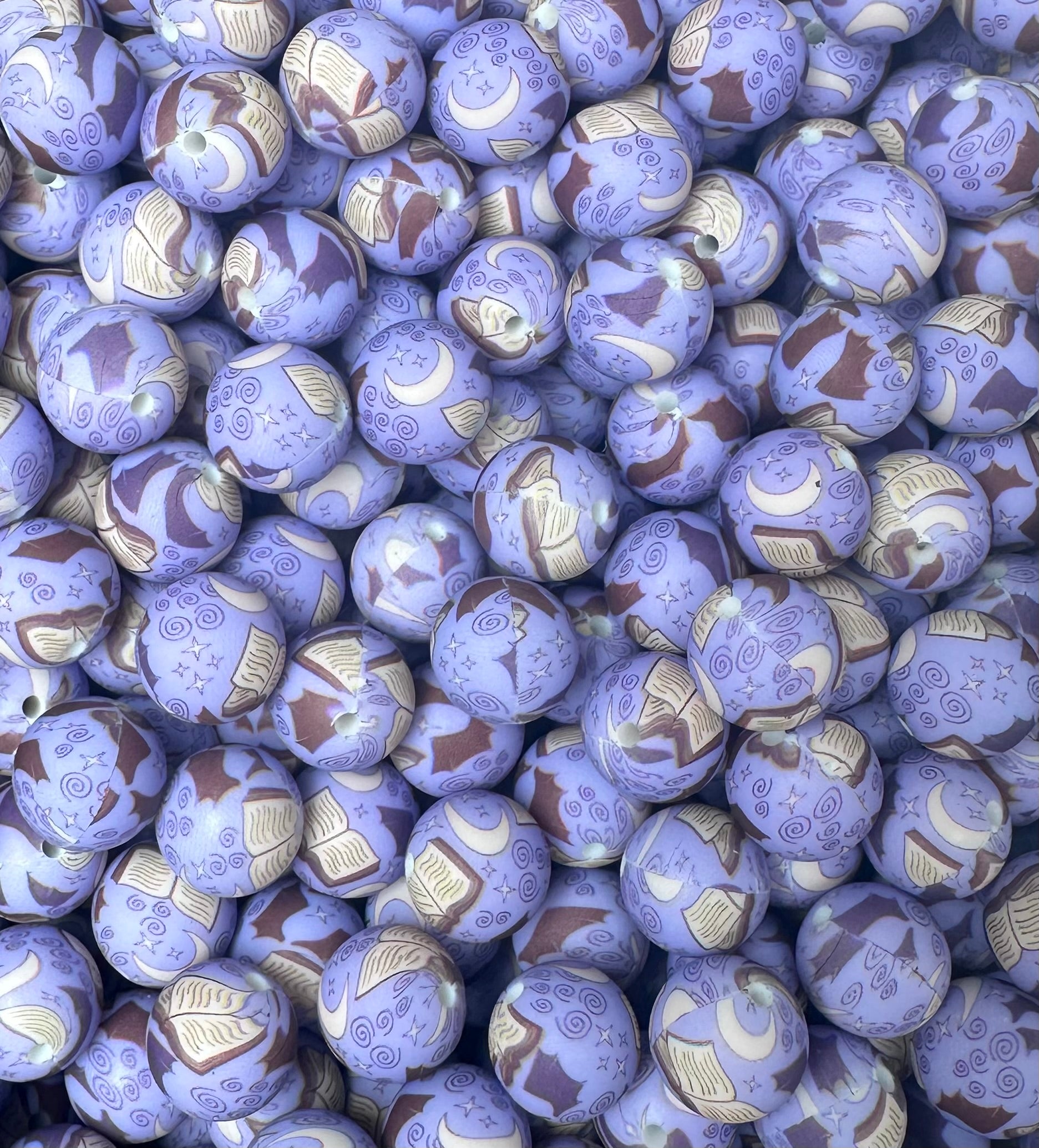 15mm Print Midnight Book Club EXCLUSIVE Silicone Beads, Book and Bats Silicone Print Bead