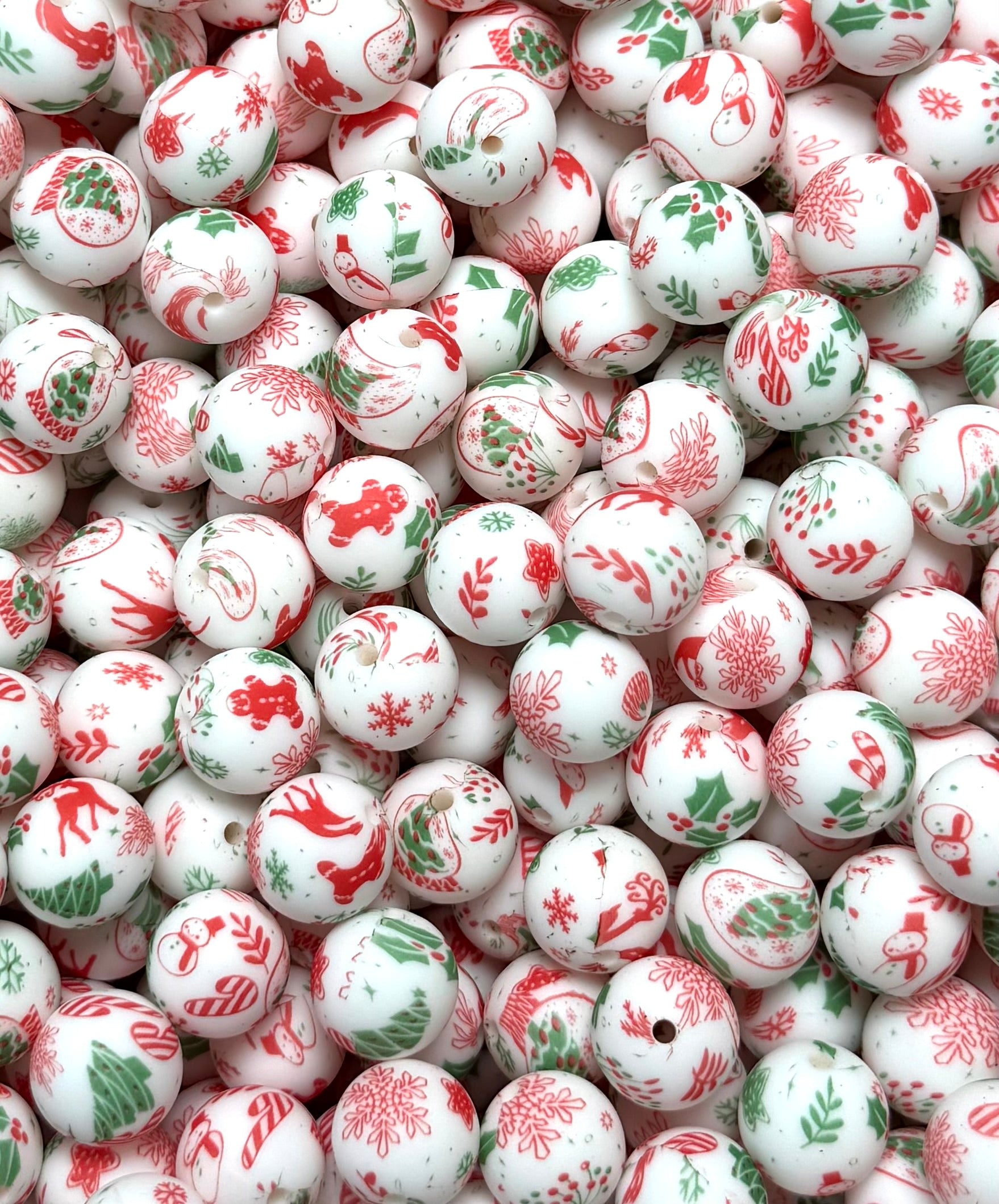 15mm print round silicone bead with 2mm hole. These are made with 100% food grade silicone.