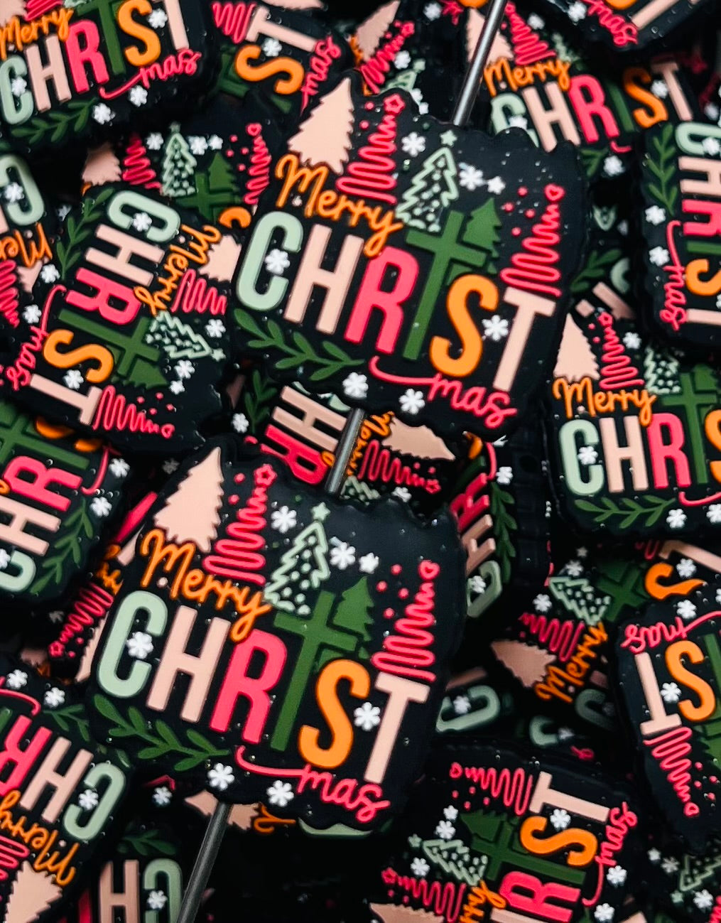 C- Merry CHRISTmas EXCLUSIVE Silicone Focal Bead, Christmas Silicone Bead