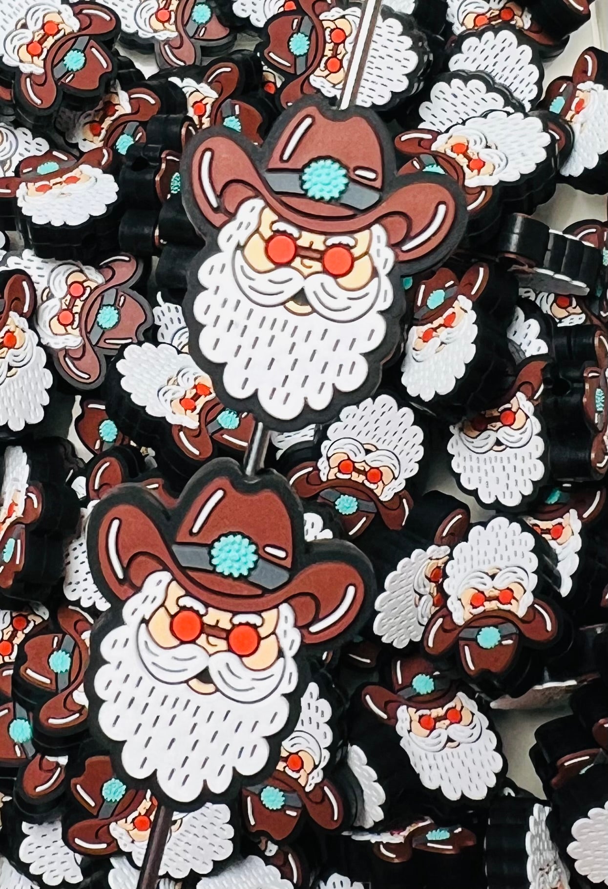 C- Cowboy Santa Silicone Focal Bead, Santa Shape Silicone Bead