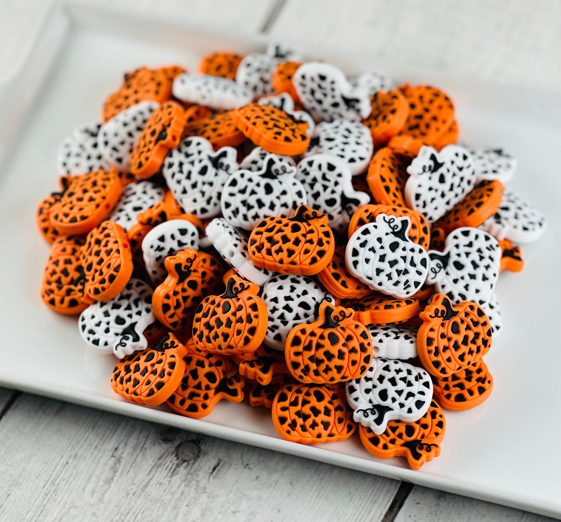 Discontinued- Cow Print Pumpkin EXCLUSIVE Silicone Focal Bead, Halloween Silicone Bead