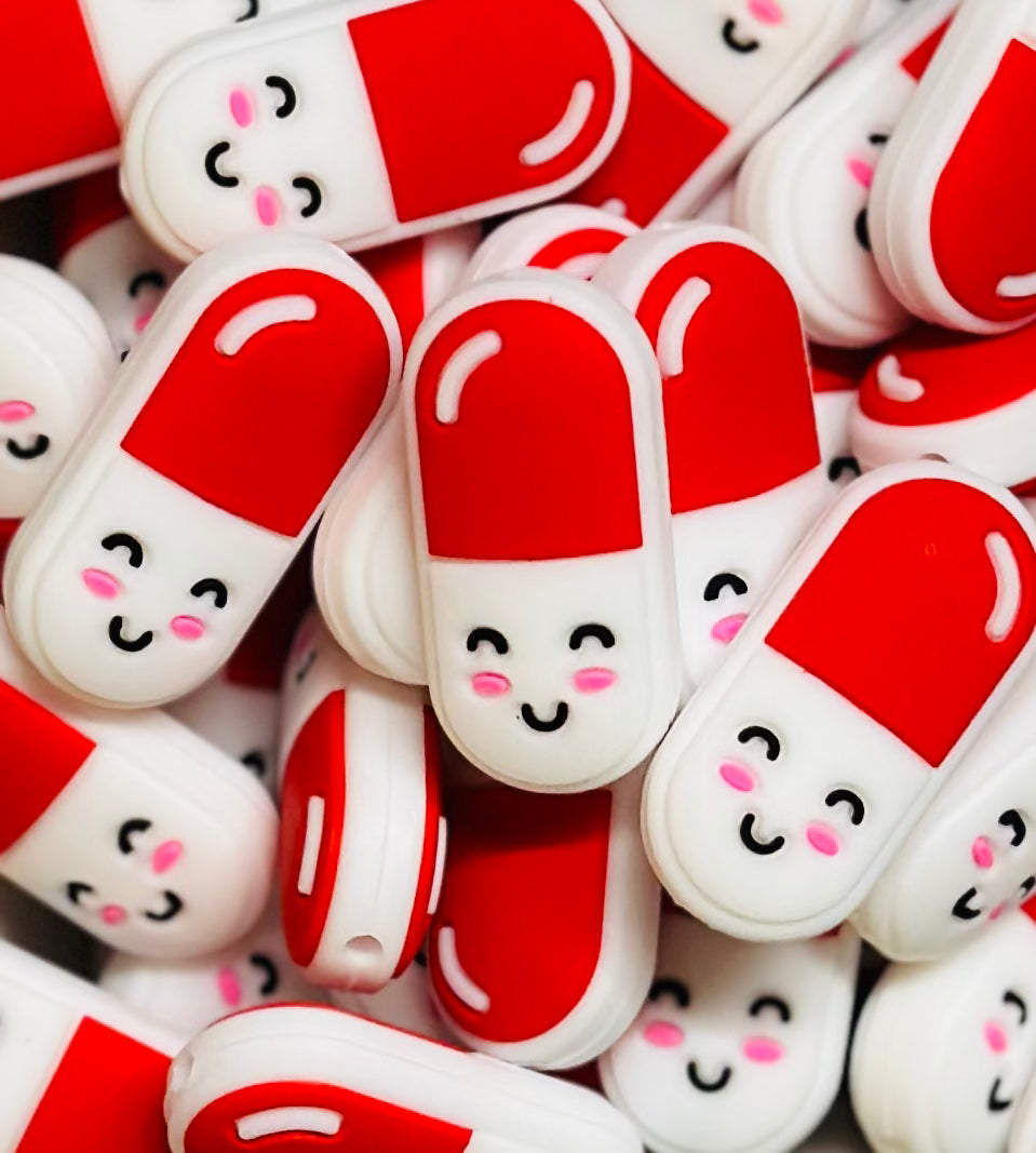 Discontinued- Happy Pill Focal Silicone Bead, Medical Focal Silicone Bead