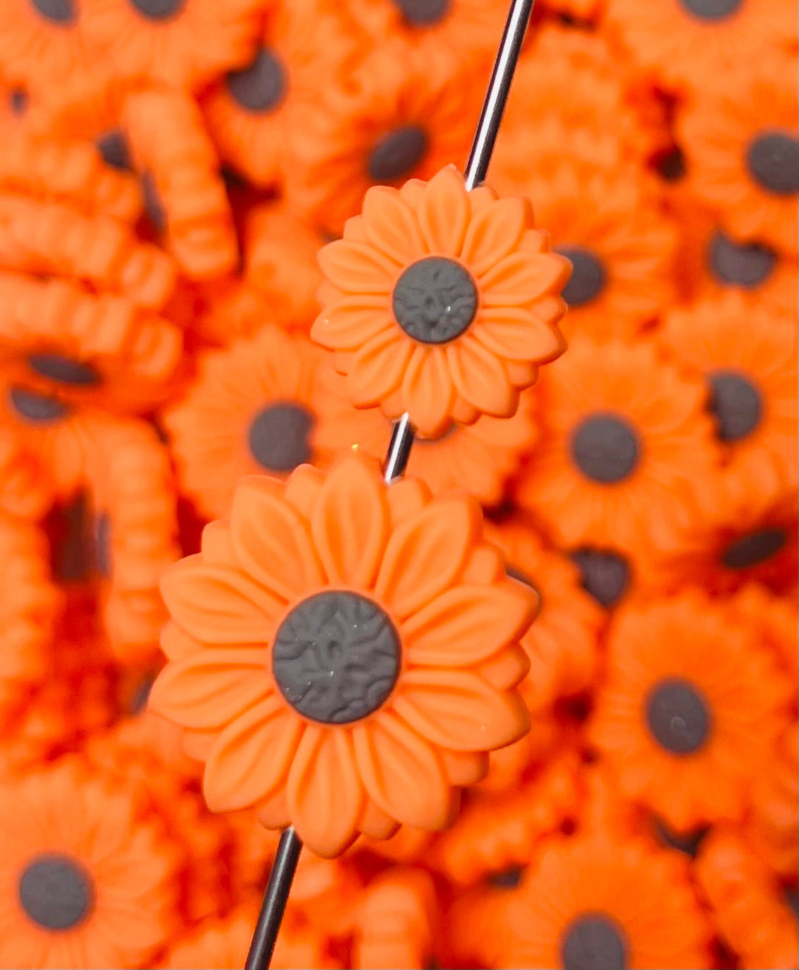 L- New Sunflower TANGERINE Silicone Focal Bead, Flower Shape Silicone Bead