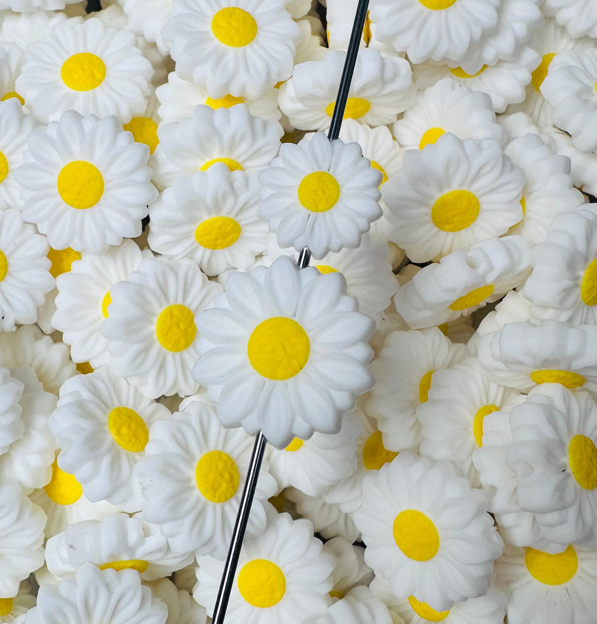 L- New Sunflower WHITE Silicone Focal Bead, Flower Shape Silicone Bead