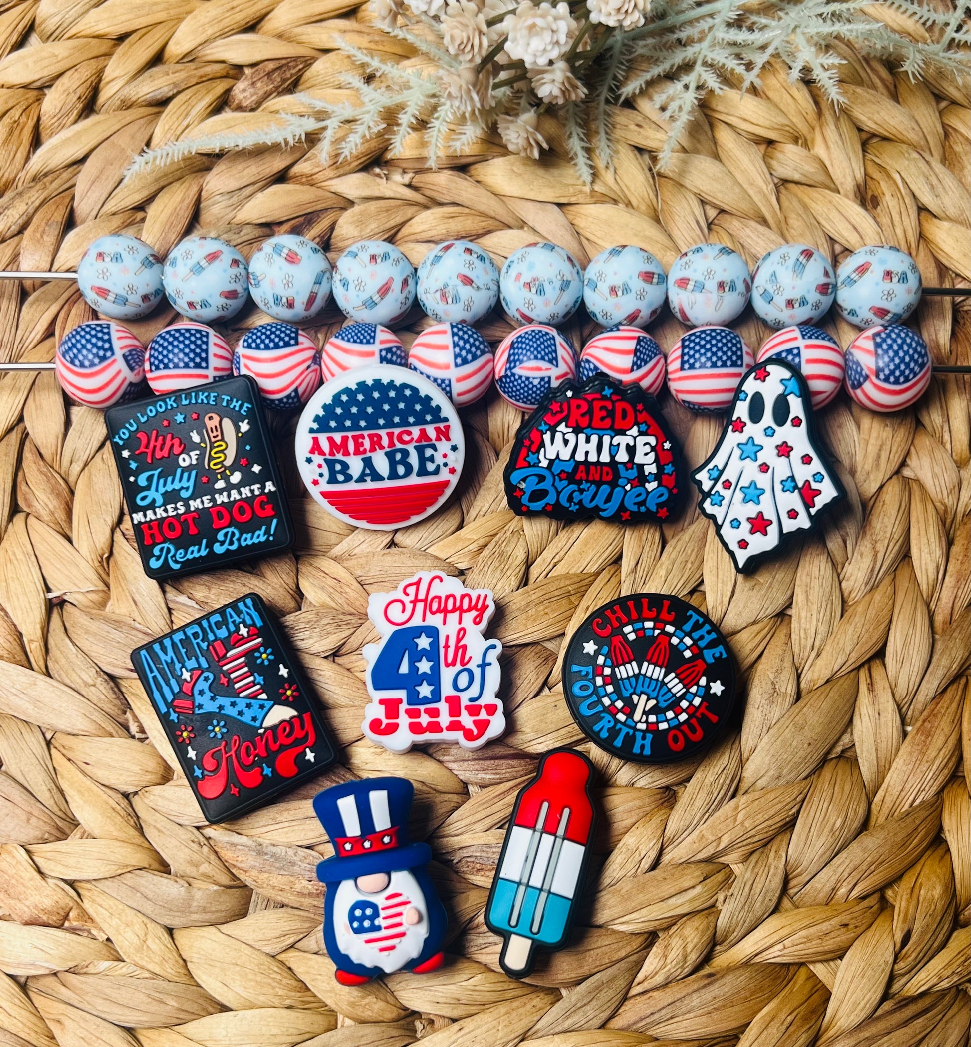 *Bead Mix #188- Starter Bundle 4th of July Bundle Silicone Beads