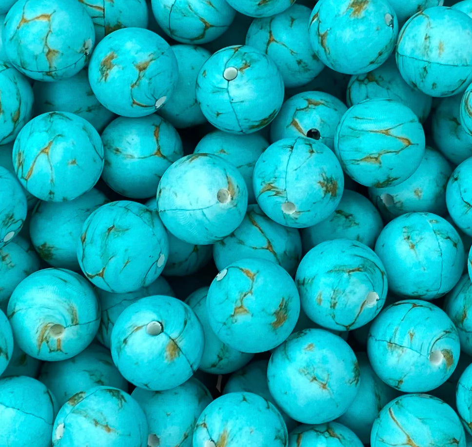 15mm Print Turquoise Stone by CTS Round Silicone Bead